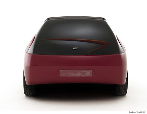 At the rear we have fitted various functions: to improve the aerodynamic the side mirrors have been replaced by video cameras fitted on the spoiler, the reverse gear light, anti fog light, windshield wiper are integrated in a single distinctive asymmetrical element that includes the rear door-handle too. A vertically developed boot of generous dimensions allows big load-carrying.