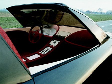 Another innovative design element is the rear/indicator lights which emerge from the rotation element of the roof. The rear-end of the of the car features typical Alfa Romeo elements such as the high, thin and separate tail lights.