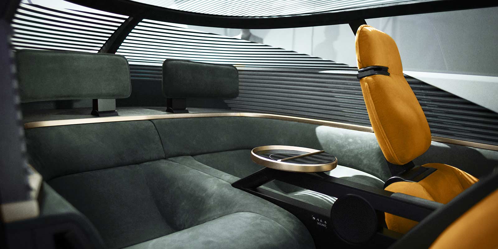 Inside the concept car, an eclectic space inspired by interior design, the atmosphere of contemporary homes, by fluid architecture with great attention to detail in an overall composition of pure forms.