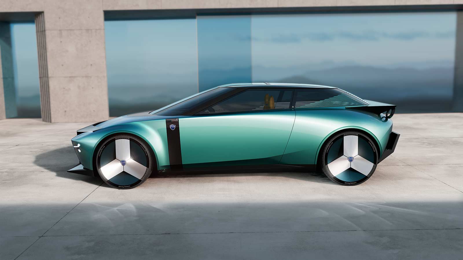 The new Lancia concept car fully embodies the principles of the new design language of the brand, a pure and radical design language where the cars’ volumes are created from the intersection of elementary and iconic forms such as the circle and the triangle, combined with a few eclectic details. The new Lancia concept car therefore becomes an expression of the Italian timeless design, with a sustainable and innovative approach that goes beyond the typical automotive language.