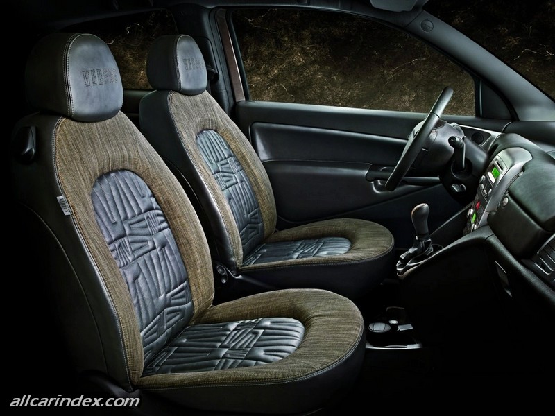 The same strong personality is evident inside, as borne out by special upholstery produced with a band in a cloth that recalls the world of fashion – and a central area in brown leather with a 'Versus' logo heat-printed in relief, just as on the accessories produced by the fashion brand.