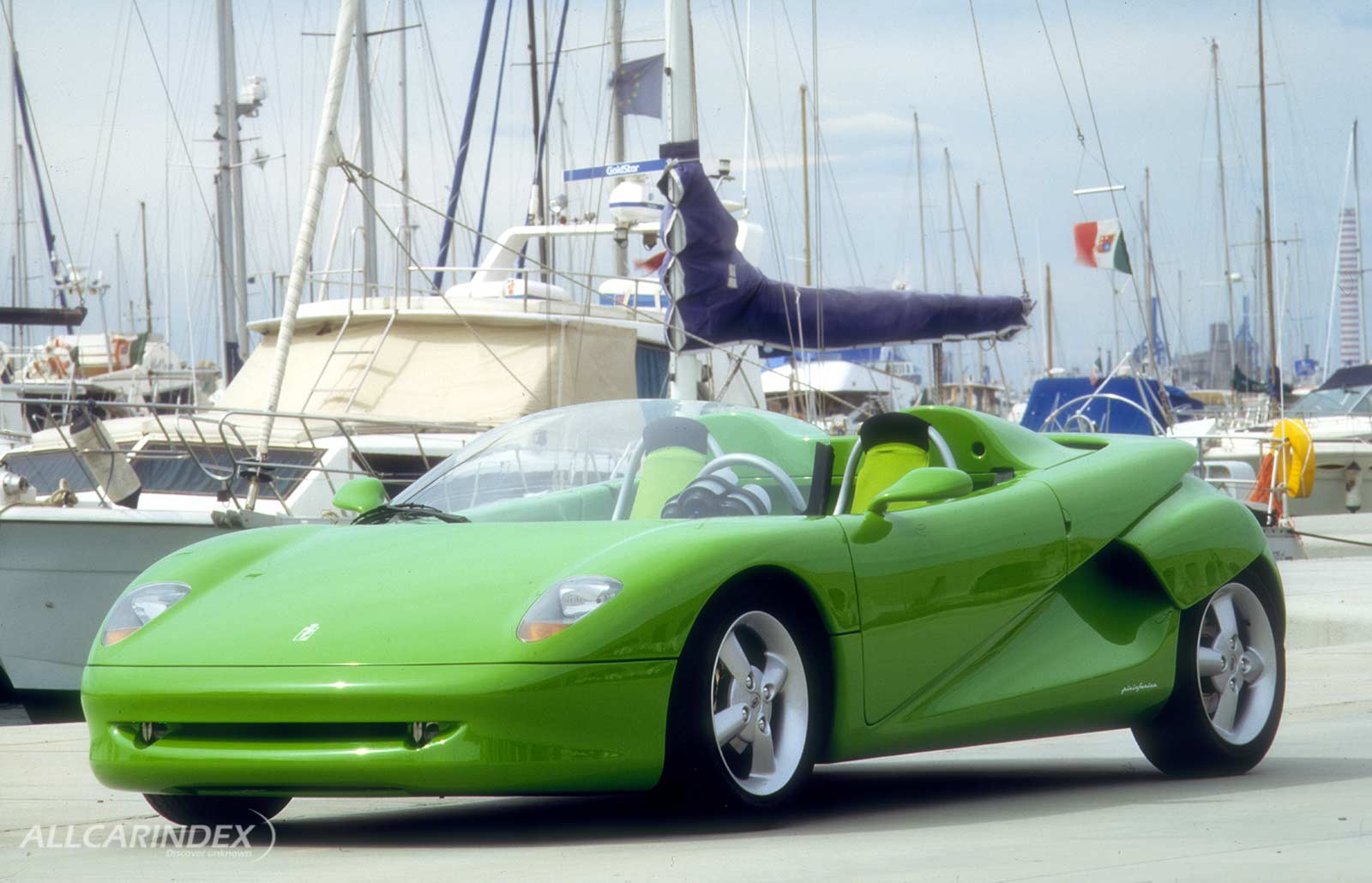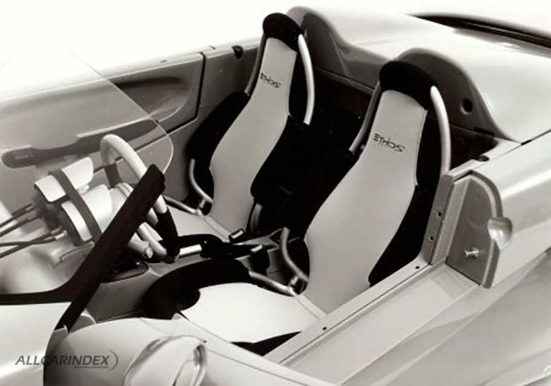 First concept of the Ethos trilogy, a family of environmentally-friendly vehicles of different configuration, this spider shares, with the following coupé and city car versions, the aluminium space frame (Hydro Aluminium), the body in thermoplastic material (General Electric Plastics) and the innovative Orbital thermic engine with excellent fuel economy and low emissions.