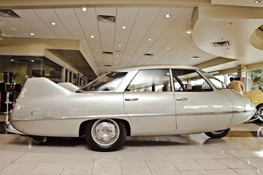 When the scientific research is combined with an original and revolutionary shape. The rhomboid arrangement of the four wheels and the exceptional dray coefficient (CD=0,23) allowed to obtain, with the same performance (Fiat engine 1089 cmc), higher top speed and lower consumption.