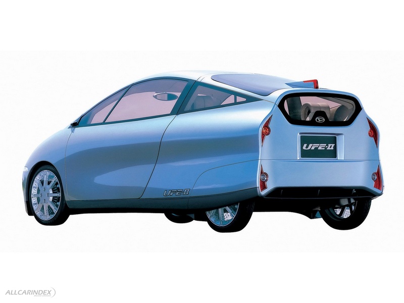 Daihatsu's engineers have pushed the eco-saving promise of the UFE shown at the 2001 Tokyo Motor Show to maturity. The UFE-II is a four-seat hybrid minivehicle with an engine plus two motor system that achieves the world's highest fuel economy rate, 60 km/l (Japan 10-15 mode emission standard, Daihatsu in-house test data).