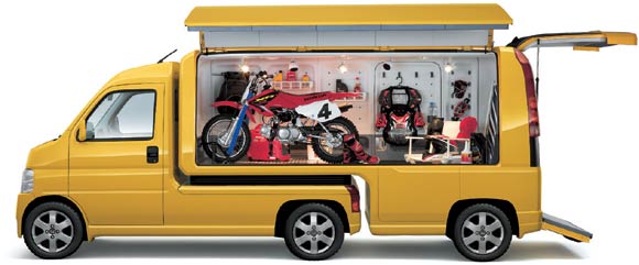 Convention tells us that commercial vehicles are vehicles purely for work. But Honda envisages a new future for the commercial vehicle. We see the commercial vehicle as a tool for both work and leisure, with a wide range of possible uses. ACTY COMPO is such a vehicle, combining the exceptional functionality of a truck with a maximum load volume of approximately 4,700 liters, all in one package. During working hours, the trailer provides ample space for delivery of goods to offices, restaurants and other businesses. And after work, it becomes the ideal partner to carry equipment for outdoor and other leisure activities. ACTY COMPO offers the flexibility for enjoyment of a whole variety of activities-it's an entirely new breed of commercial vehicle that brings more enjoyment to work and leisure.