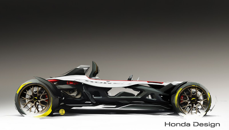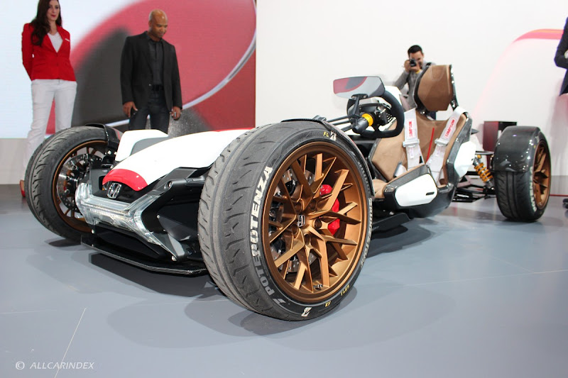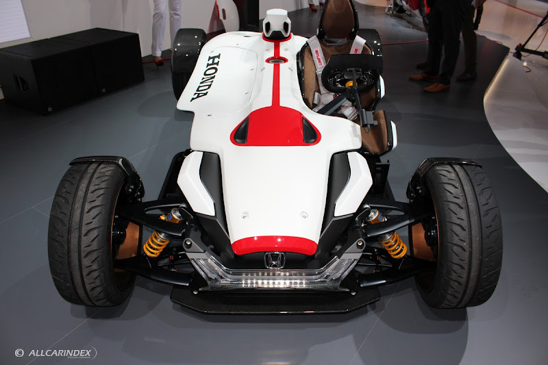 Drawing on Honda’s racing heritage, the body design and engine position have been inspired by the legendary Honda RA272 of 1965. The structure reveals the core frame and functional components of the car, much as would be more customary for a motorcycle, and is similarly compact. Overall length is 3,040 mm, width 1,820 mm and height 995 mm. A weight of just 405 kg maximises the power of the mid-mounted engine which, together with the low centre of gravity, ensures an exceptionally high level of responsiveness.