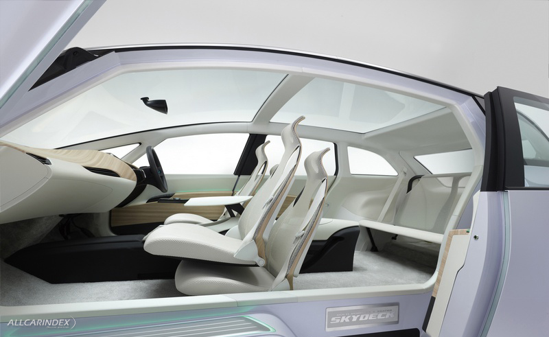 Unifying form and function with a sporty and clean design concept, the Skydeck's exterior styling appeals to every generation of driver and helps provide the outstanding fuel economy expected of a hybrid. Underneath, the body features a low and wide stance with an aerodynamic form; on top, its one-motion flow complements the expansive windows and sweeping roof. The overall impression is fresh, open and advanced.