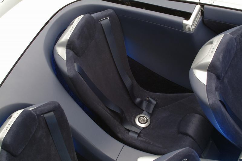 Four lightweight individual bucket seats use slender shapes inspired by modern stemware to create a contrast of sport and elegance. The effect provides roominess along with a snug and secure feeling.