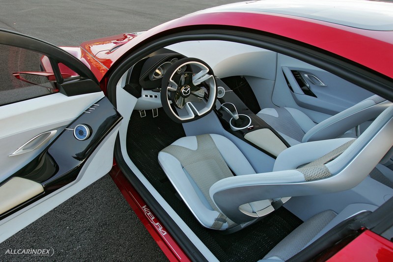 Power is supplied to Kabura’s rear wheels by a 2.0-liter version of Mazda’s highly respected MZR DOHC 16-valve engine and through to 245/35R19 Bridgestone Potenza front tires and 245/35R20 tires at the rear. While this concept has been constructed over several MX-5 chassis components, basic dimensions fall between Mazda’s MX-5 and RX-8 sportscars.