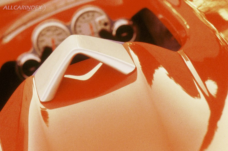 The Miata Mono-Posto sports custom bodywork, including half doors, air intake in the hood, one-piece valence front and rear fascias, cowl-mounted rearview mirror, a minimalist windscreen and aluminum rollbar. Only the headlights and taillights are stock. The paint finish is a custom Red Pearl Mica.