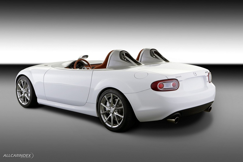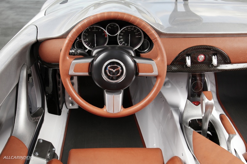 Mazda designers created special roll-over bars, not only because they are very sporty-looking, but also to contribute to aerodynamic efficiency. These also make it clear that roll-over protection is important in this concept. And they prevent wind turbulence around the heads of the passengers, from whom the law would require the wearing of helmets while driving.