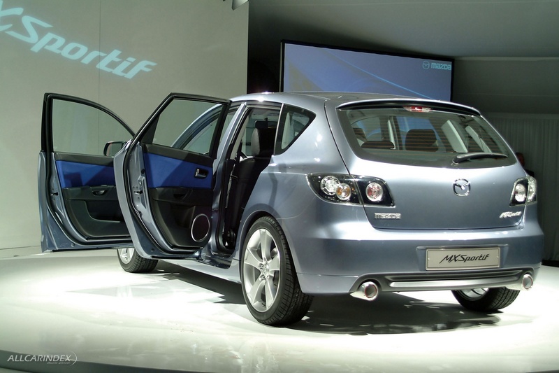 Geneva, March 4, 2003 - Mazda unveiled a new design concept today at the 2003 Geneva International Motor Show: the Mazda MX Sportif. The concept vehicle was presented at the annual auto gathering on a stage flanked by three additional, new-generation Mazda products - the Mazda6, Mazda2 and Mazda RX-8. Together, with the MX Sportif, the four vehicles represent the primary new Mazda products, products that have been conceived and developed in line with Mazda's product DNA and fully embody three core product attributes: distinctive design, exceptional functionality, and responsive performance and handling.