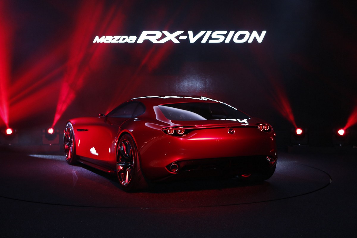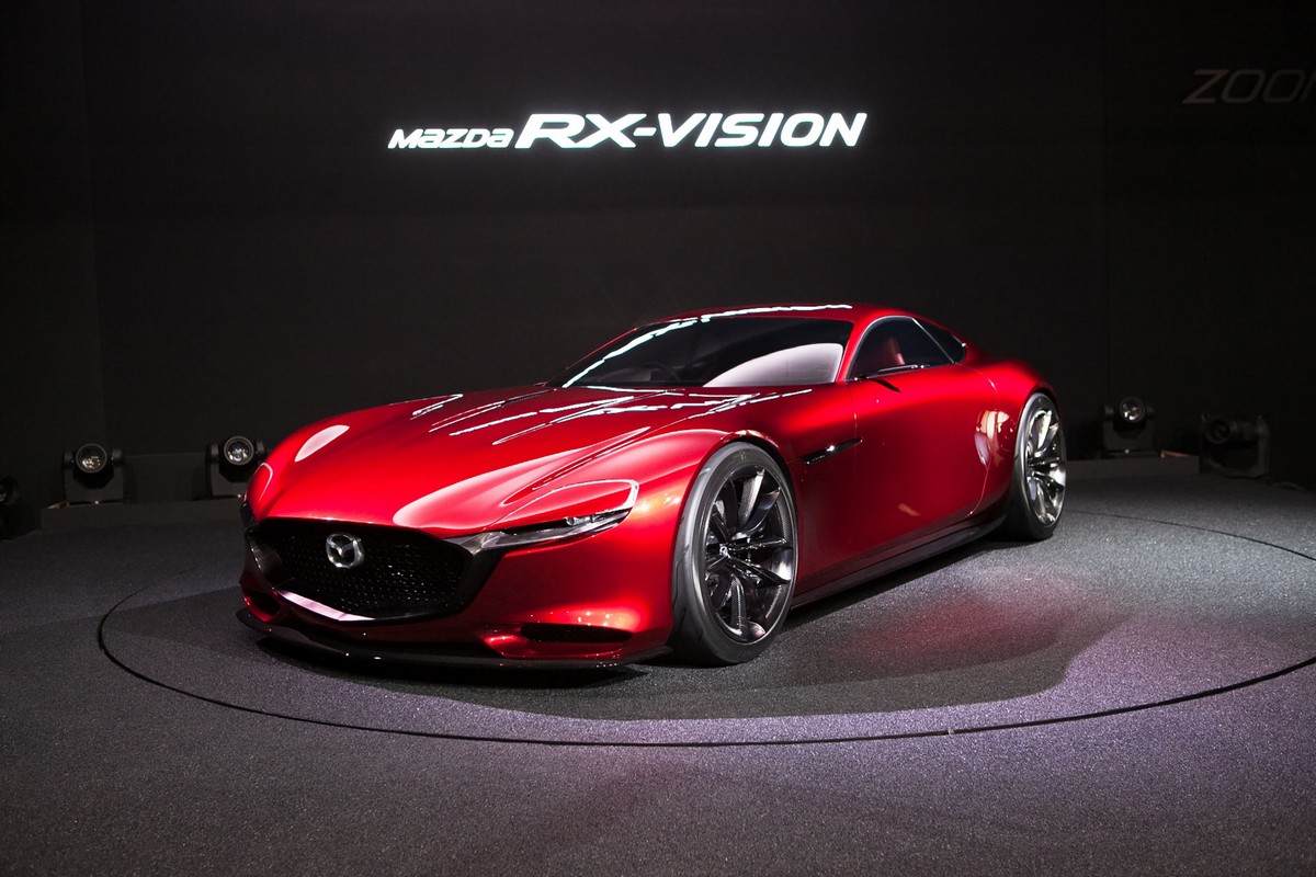 The Mazda RX-VISION rotary sports car concept introduces the next-generation SKYACTIV-R rotary engine and Mazda’s vision of the ultimate in front-engine, rear-wheel-drive sports car styling. Making its world premiere in Tokyo, the RX-VISION represents an ideal of the future that harbors the soul of the Mazda brand.