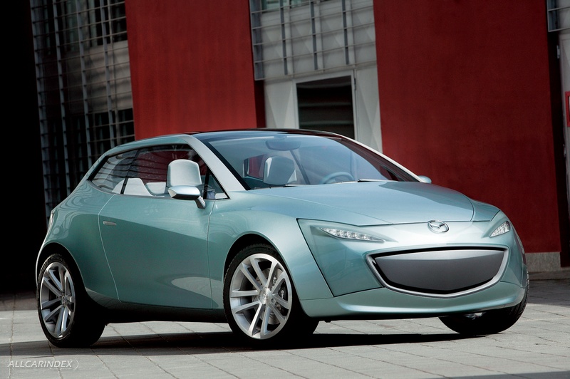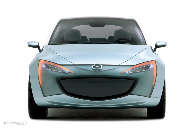 Mazda’s latest design concept is an advanced interpretation of Mazda stylishness that visually communicates dynamic potential so typical of the brand, yet mixes this with a youthful lightness and surprising hidden features never seen on a Mazda concept before. The front of the vehicle is an evolution of the Mazda RX-8 with a large five-point grille and fender treatment.