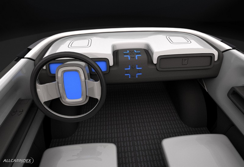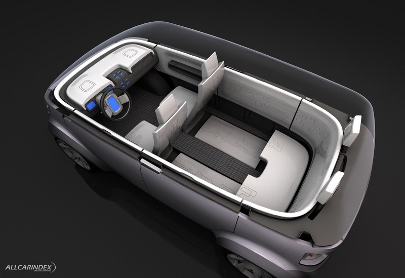 Like "i", Concept-EZ MIEV makes the best of its engine-less front with a very clean and honest design where glass is a major element, but also creating a ample crumple zone to protect the occupants and soft contours to protect pedestrian (including retractable wipers).