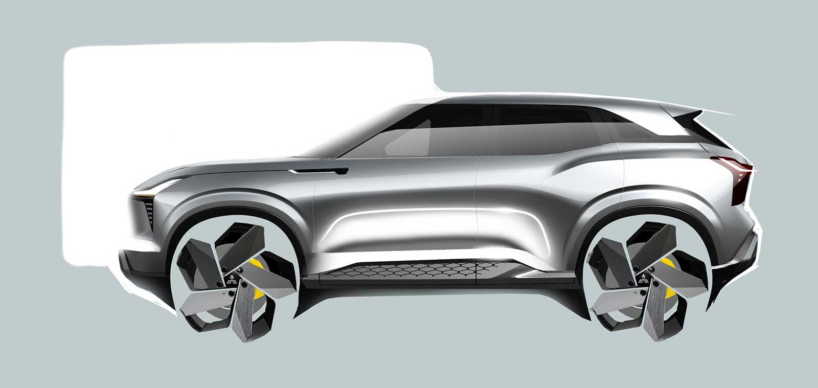 The stylish and sporty styling is embodied in the combination of powerful and imposing aura of an SUV and a sleek surface. At the front, the Dynamic Shield concept, which expresses both performance and protection, is integrated to the body with depth of dimensionality.