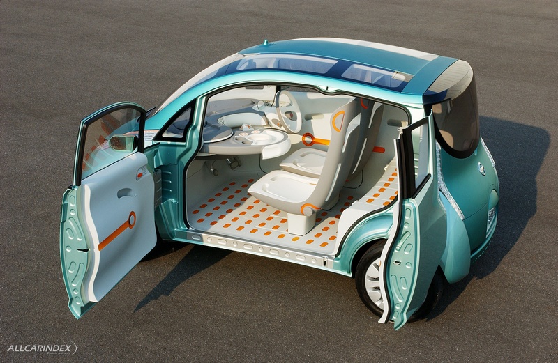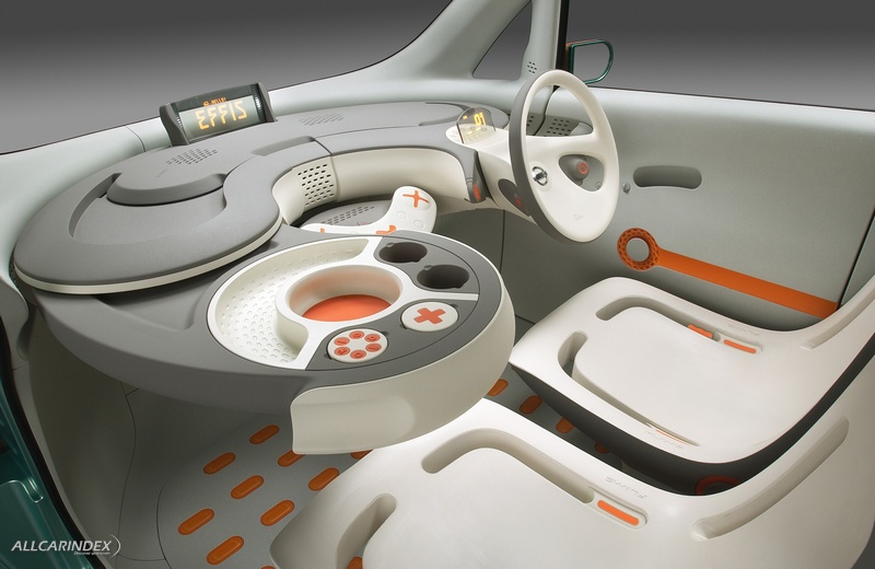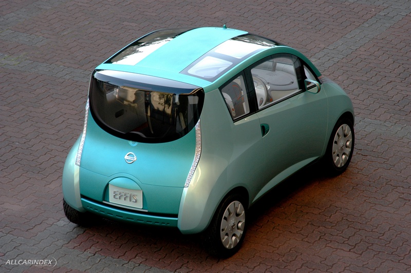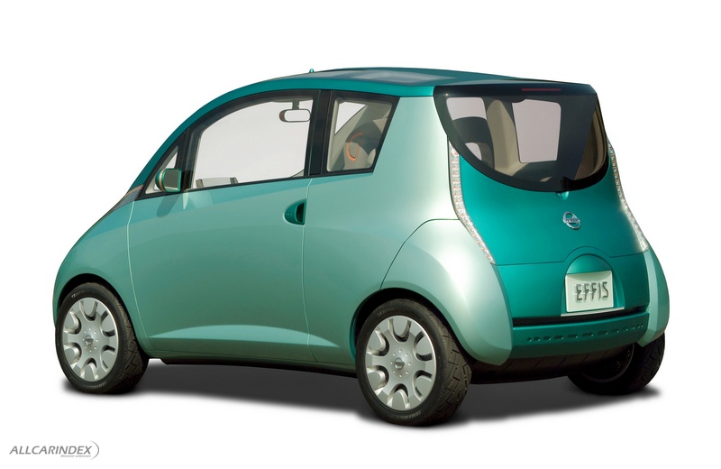 Effis city commuter car combines Nissan's newly developed Super Motor and Compact Lithium-ion Battery with a fuel cell stack. Effis shows one possibility for future fuel cell vehicles (FCVs) that will require an ultra-small, lightweight design. An all-new concept is incorporated in the multiconfigurable arrangement of the instrument panel and seats. This arrangement secures comfortable seating space for three occupants plus enough room for one more person. The three-meter overall length allows agile maneuverability.