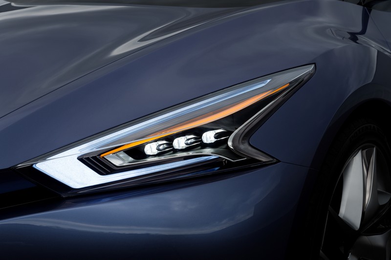 A low and wide stance with short front and rear overhang emphasizes more chunky, aggressive and sporty impression rather than authentic sedans. Together with this challenging proportion, distinctive design aspects are presenting one of the new directions of Nissan appearance. The energetic and fluid momentum which arises from ‘V-motion' shaped grille streams through the hood to shoulder creates the impressive cadence with emotional aura.
