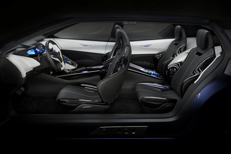 Empowering all four adventurers is a unique centre console stretching from the dash to between the rear seats - an iconic monolith in an onyx-black finish. Screens visible from each seat blend seamlessly with the surface, only becoming apparent as they display whatever contents the buzz of the moment demands. Whoever finds cool content can transfer it from his mobile to the on-board screens so all can share in the fun.