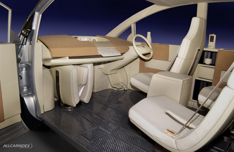 A six-seat compact minivan designed for young families and providing a host of "living-room comforts". The Kino is an ideal vehicle for young families with children. Executed in a refined design and incorporating a wealth of new ideas, the Kino has generous interior space in which six independent seats are arranged in three rows within its compact size. The vehicle can accommodate a wide variety uses, thanks to its highly functional appointments and versatile seating configurations.