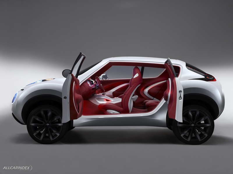 The profile is dominated by the prominent wheel arches and by the body’s high waistline, which combine to give an impression of strength and which contrast vividly with the slim side windows. Echoing a style first seen on Mixim, Nissan’s high performance electric coupé concept shown at the 2007 Frankfurt Show, the glasshouse resembles a crash helmet visor.