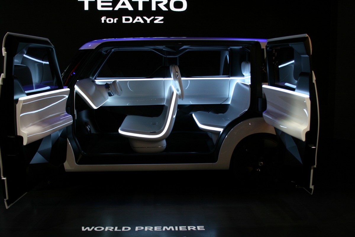 Teatro for Dayz is a combination of mobile technologies unlike any previously imagined in a car. Combined with Nissan's EV technology, this car represents a radical new way of thinking about how vehicles can be used.