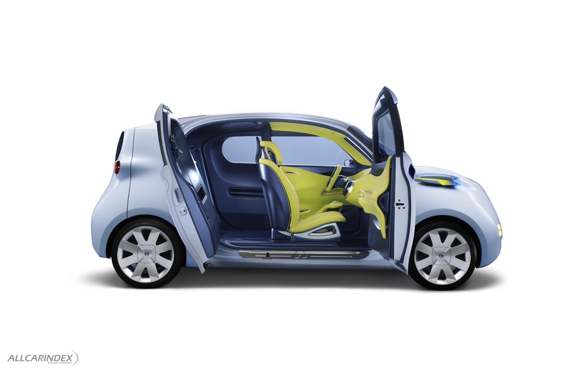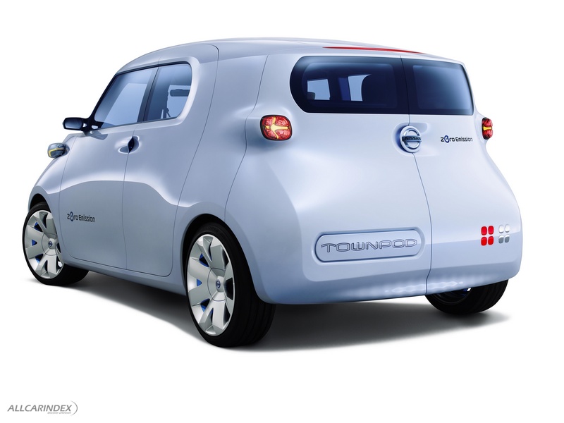 Externally Nissan Townpod consist of many familiar elements, yet it is different. It employs the same zero-emission technology found within Nissan LEAF. Charging points can be found in the nose behind an automatically retracting cover, which appears to be backlit thanks to its electric blue painted surrounds reflecting subtly off the car's "Stratosphere White" body paint. Similar electric blue hints are visible behind the door handles, number plate, the spokes of the alloy wheels and within the headlamp pods. The car does not need to shout that it is an EV. It more subtly suggests its ecological and economical credentials.