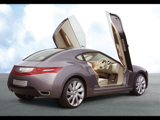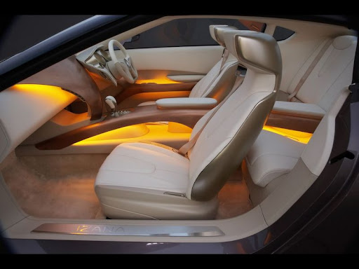 IZANA`s style has unique qualities enabled by the redefinition of balance and other characteristics that any coupe should inherit from the designs of its predecessors. The basic idea for its unrestrained lines and the for the choice of rear wheels being larger than the front ones is taken from Japan`s classical vehicle, the jinrikisha. With an elegant but vivacious silhouette, IZANA is reminiscent of an animal about to leap. As it combines the dynamic form with fine-featured lamp treatment that hints of kabuki makeup, IZANA expresses both contained strength and flamboyance. The large gull-wing doors tempt the driver to make a run into a different and undiscovered world.