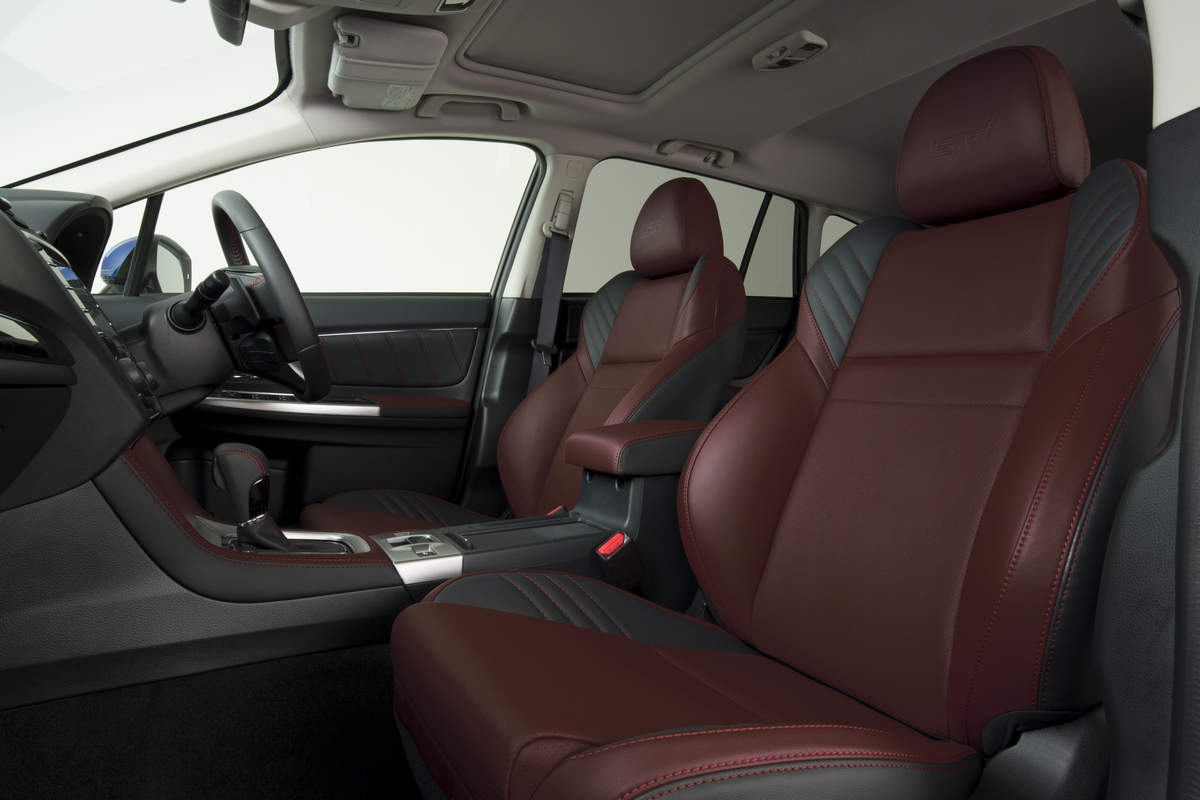 The “WR Blue Pearl” colored Levorg STI Concept employs an exclusive front fascia with quality feel and STI-designed 18-inch aluminum wheels, offering stylish design. Its red-wine and black two-tone color interior features high-quality feel with exclusive accessories. By employing exclusive STI-tuned dampers, superb ride quality, stability and exhilarating handling performance have been delivered.