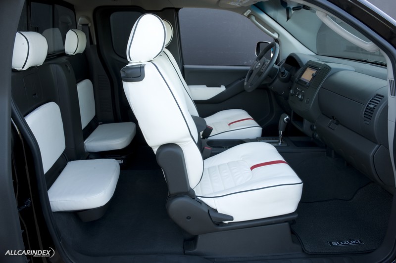 The Suzuki Equator offers the driver and up to four passengers a functional interior that combines versatility, cargo utility, comfort and convenience. Both Extended Cab and Crew Cab body styles feature flip-up rear seats, a fold-flat front passenger seat and removable storage boxes tucked beneath the rear seats to provide additional cargo capacity. The Equator offers additional convenience features such as a dual glove box with lock, damper and lamp, center console storage and one-liter bottle storage integrated into the front doors. A host of cupholders and power points are standard throughout the truck. Equator Crew Cab also will offer available leather-appointed seats, including a power-adjustable driver’s seat, heated seats, heated mirrors and a factory-installed moonroof. Additional available interior amenities include a Bluetooth?? hands-free phone system, Rockford Fosgate-powered audio system with six-disc in-dash CD audio system, optional satellite radio and MP3 capability and MP3 player aux-in jack.