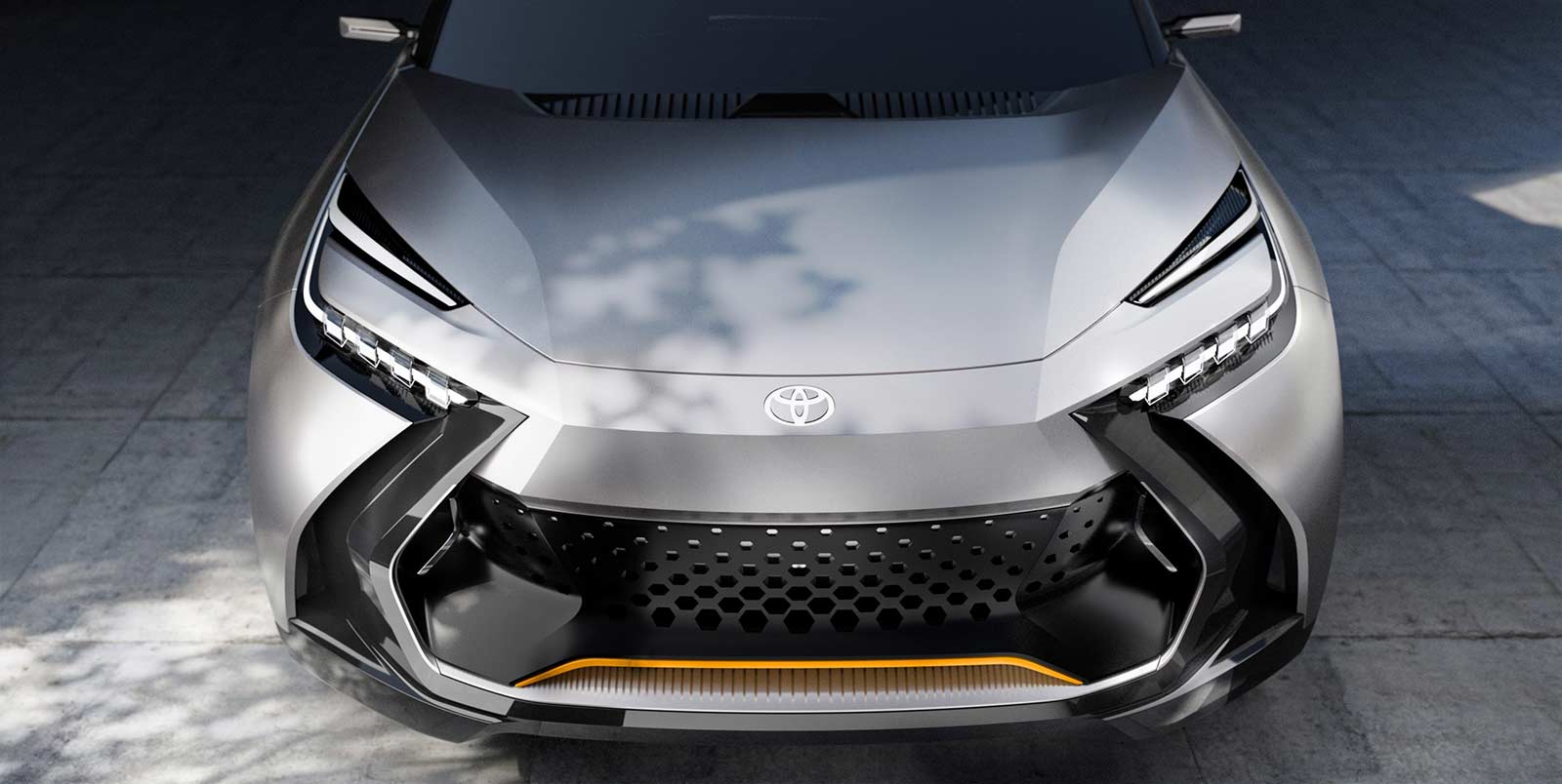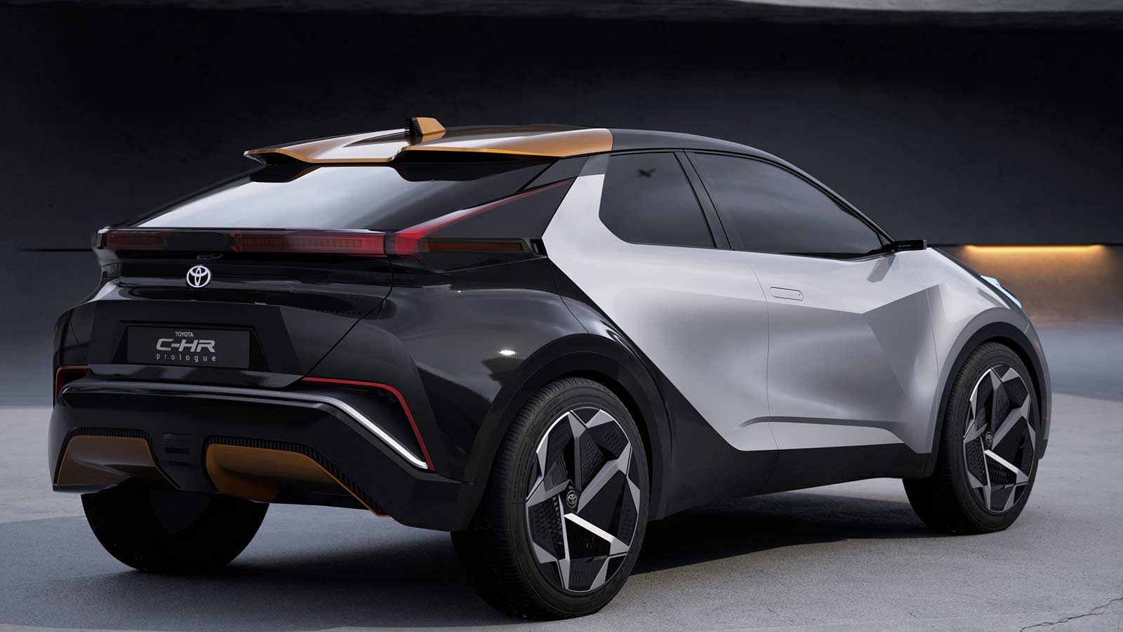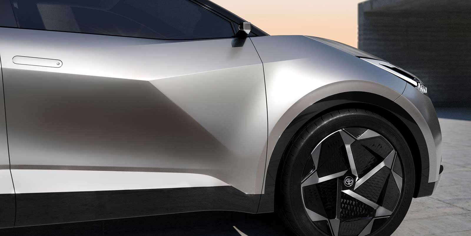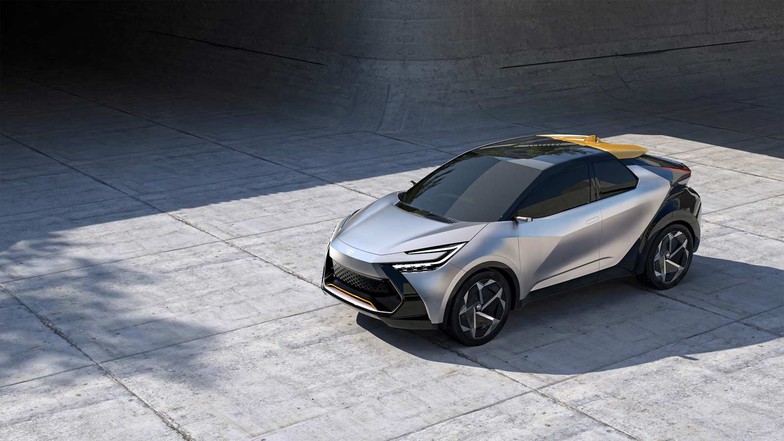 The Toyota C-HR prologue introduces a third colour accent – sulphur, over metal silver and recycled carbon black. The stand-out tri-colour option was conceived from the start of the project.