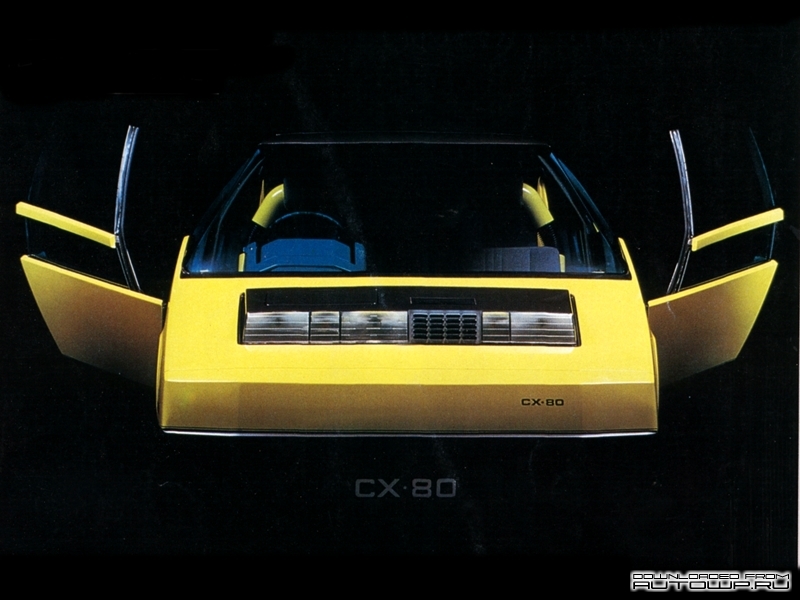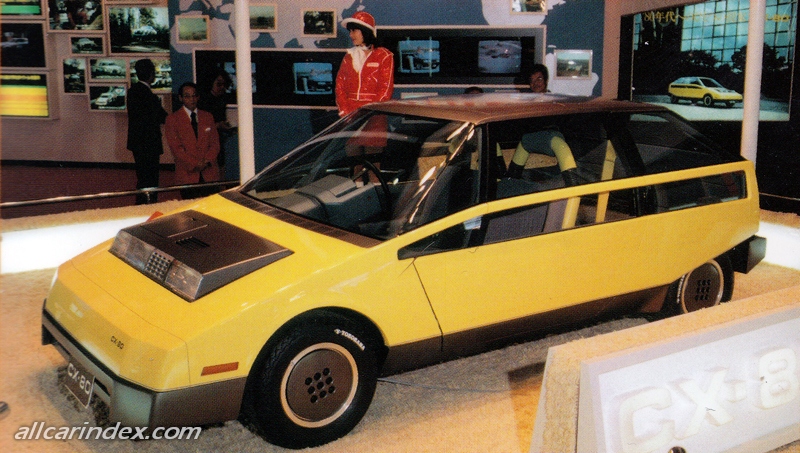 The CX-80 — A car designed specifically to respond to contemporary changes in the way people view automobiles, it has a compact body construction, and is high versatile and economical. Inside, the driver sees digital meters and gauges clustered on the dashboard — within the frame of the steering wheel. The CX-80 also has a push-button automatic transmission selector system, and hinged doors for easy boarding and alighting even in tight parking spots. These and many other luxury features make this a high-quality prototype car for the coming decade.