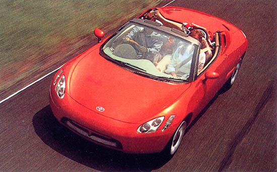 At Toyota, we know exactly what a sports car should be: responsive to the driver's every command, quick off the mark, and nimble on a twisty road. We've always felt the midship engine design was the best way to meet all those goals, and ensure unprecedented comfort. The Toyota MRJ has all the sportscar characteristics a midship engine car can offer, plus extra utility that lets you add sporty driving to your everyday life. Enthusiasts today want the joy of a sports cars with a personal touch-with individualist form and coloring. The Toyota MRJ fits the bill perfectly."