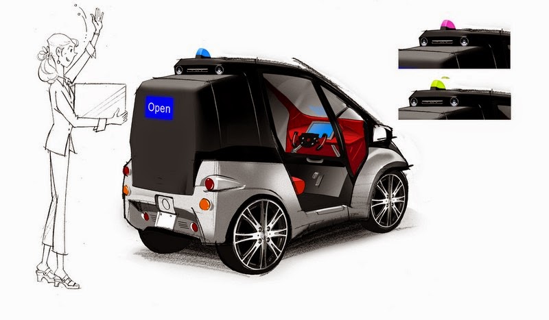 1. The Smart INSECT's front-mounted motion sensors use facial-recognition technology to detect and authenticate a driver registered with the vehicle when he or she approaches.