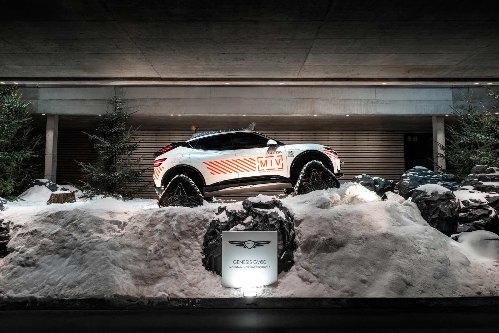 The GV60 MIV Concept comes with snow tracks and features like sports seats, medical supplies and emergency communication and warning systems that support mountain rescue operations in extreme conditions.