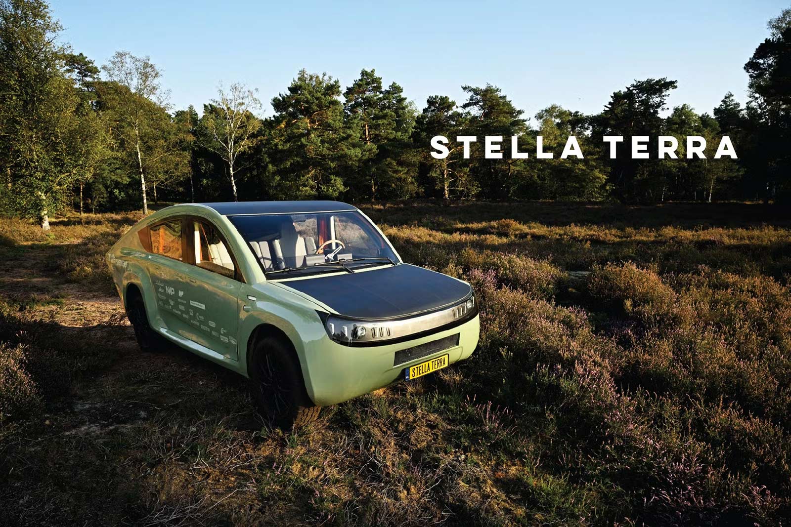 The solar energy for Stella Terra is collected by solar panels on the roof. With these solar panels and its robust construction, Stella Terra achieves complete independence in a sustainable manner, anywhere in the world. This solar car, which is road legal, has a top speed of 145 kilometers per hour, weighs only 1200 kilograms, and has a range of 630 kilometers on a sunny day.