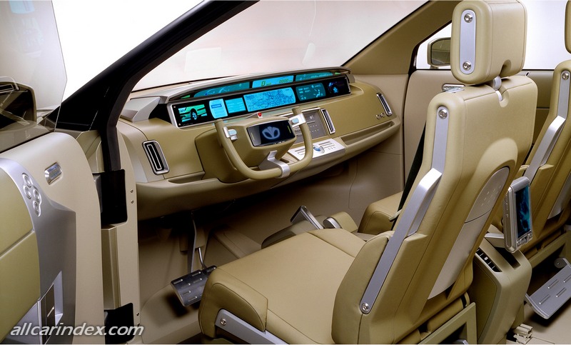 Its exterior design is unusually clean and well resolved for a Korean concept car. At the front a dark grey graphical theme is carried over from the Kalos of Frankfurt 2001 and integrates into the three part Daewoo grille in a similar way to that of the Mirae Daewoo concept car of 1998 – a car with which the Flex shares its ‘girder’ spoke wheels. The A-pillars lift proud of the windscreen base which softens the car’s ‘one and a half box’ profile, and then sweep up in several subtly integrated arcs to give the DLO a single upper curve.