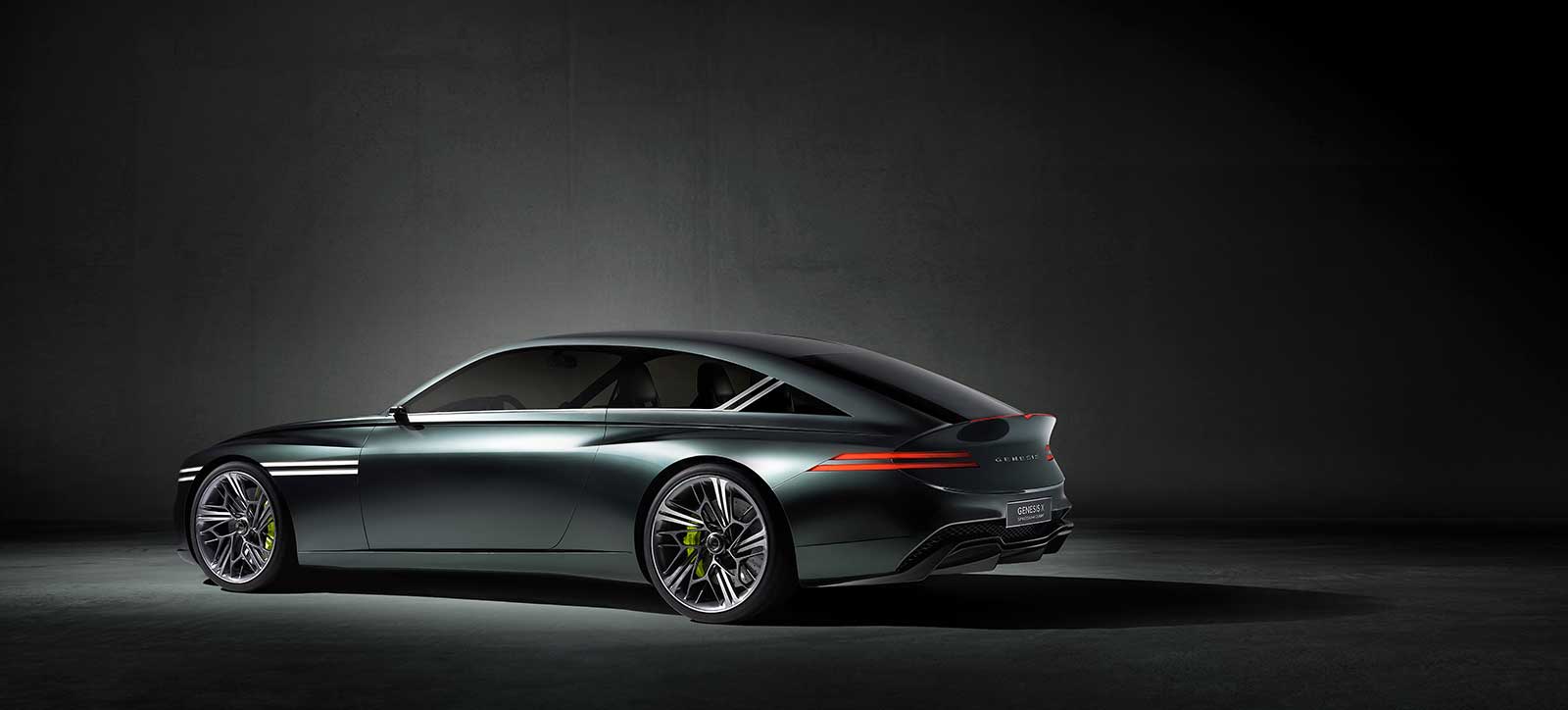 - Genesis’ wings and Two Lines prominent in the design, while an hourglass silhouette gives the car its muscular presence