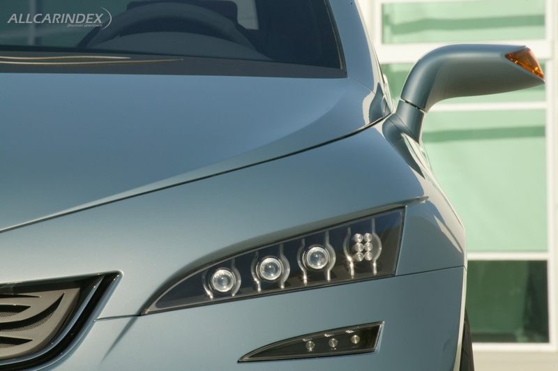 Portico is powered by Hyundai’s new, high-tech Lambda V6 engine. It’s a 24-valve, DOHC V6 with aluminum heads and cylinder block, mated to a six-speed Shiftronic automatic transmission soon to be offered in Hyundai’s production vehicles. The Portico is also designed to accept Hyundai’s hybrid drive system. This configuration features two electric motors; one driving the front wheels and a second driving the rear wheels, providing efficient AWD (all-wheel-drive) capability. Front power is supplied by a 110 kW (136 horsepower) electric motor; a 60 kW (83 horsepower) motor powers the rear wheels.