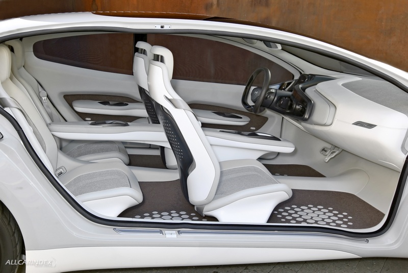 With a focus to reduce overall weight through materials and design, the hexagon/honeycomb shape can be found throughout the cabin, used as a repeated design element while tying the interior theme together. Used also in the door inserts and seats, this lightweight and breathable mesh serves to reduce overall curb weight as well as being a unique design element. Other materials found in the cabin are soft to the touch with a matte finish, including white leather, offering a more luxurious feel while making the interior more inviting and tranquil. The 100-percent earthy mocha wool felt floors add a touch of warmth and also are environmentally friendly by coming from a renewable resource. Adding further to Ray’s green characteristics, the floor mats are incorporated into the design of the floor, greatly reducing the amount of material used.