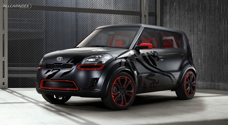 The Kia SOUL Burner is the ´bad boy´ of Kia´s three new concept characters. A ´show-off´ complete with dragon tattoos. From the outside, it is a mean, totally black beast with sparse flashes of scarlet. The tattoos are gloss black on the black satin paintwork, which shows a large dragon creeping over the bonnet. On the other side, a small dragon climbs up the C-Pillar.