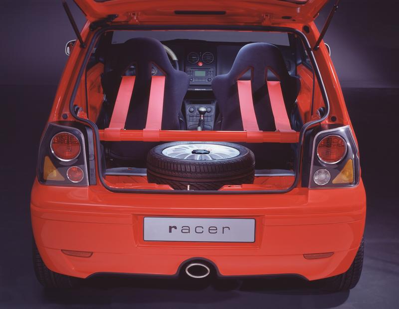 The interior owes more to the world of motor sport than to a city car. Two fully adjustable bucket SEATs are equipped with four point racing-type safety harnesses giving a clear indication of the Arosa Racer’s intentions.