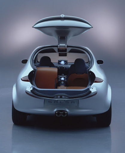The outside image of the SEAT Salsa follows the lines of the new concept of practical sportiness defined by the Technical Centre at Martorell: two doors, double opening tailgate (the upper part slides forward, over the roof; the lower part folds back) and with no bonnet at the front, direct access to the engine being from below.