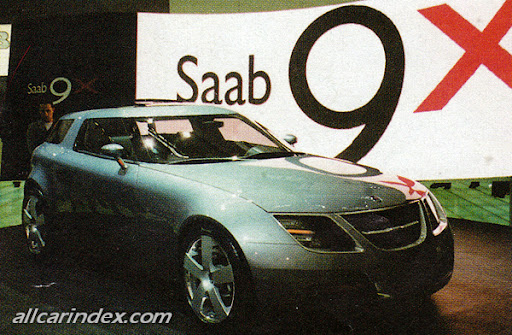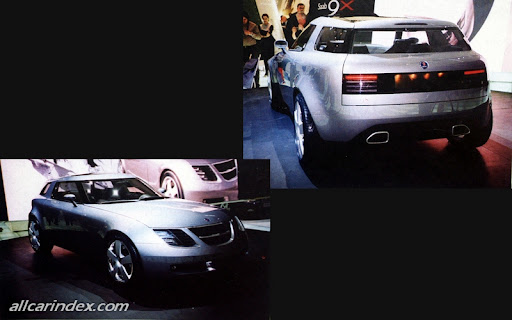 Externally, that Saab signature, wrap-around windscreen is the Saab 9X's most striking feature. The steeply raked, heavily tinted glazing gives the car a strong 'cockpit' look and this effect is balanced by the rear side windows which appear to flow round without interruption into the rear screen. The curvaceous, muscular bodystyling is just as clean and uncluttered. There are no swage lines down the sides, only a soft, clean surface wrapping around the front wheels and extending the length of the car. The gently flared wheel arches accommodate 19-inch, five-spoke alloy wheels, which are located, with minimal overhangs, at each corner of the chassis to optimise interior space, allowing a relatively long wheelbase of 2.7 metres within an overall length of just over 4.0 metres.