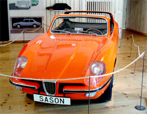 Catherina was a sports car prototype. the project with a new Saab sport car began in the early 1960s. Saabs designer Sixten Sason who a the time was working on a freelance basis, drew some sketcehes resembeling a small sports coupé for himself. Around this time plans for a new Saab sports car was taking shape. Sixten Sasons mission was to adapt his model to possible full-scale production. And in January of 1963 the work started on it in earnest January of 1963 the work started on it in earnest. Four months later assembly of the first prototype started in ASJ (railway equipment) workshop in the Swedish town of Katrineholm (hence the Catherina). I took until April 2 1966 before the first prototype was shown for the public, in Linköping Sports Centre. It was equipt with a bunch of futuristic features such as a removable targa top. Other Sason refinements did not make it beacuse the car was to be sutible for production. one of the things that Sixten wanted on the car was roofmounted headlamps for longer range on dipped beams. Incidentally some of the lines from the Catherina were used on Sixtens last Saab the Saab 99, (one of the best Saabs ever!) at this time Sixten also had some drawings of a 99 on his drawing board. But when the test drives were caried out it showed that quite a lot ofimprovment work still had to be done, before she was ready for production. At the same time a competitor to the Catherina appeared- made by Björn Karlström and Björn Andreassson. There model was called MFI 13. A comparison of the two prototypes showed that the MFI 13 was more sutible for production and later ti became the basis of the new Saab Sonett II. So the Catherina ended up on the Saab Museum in Trollhättan.