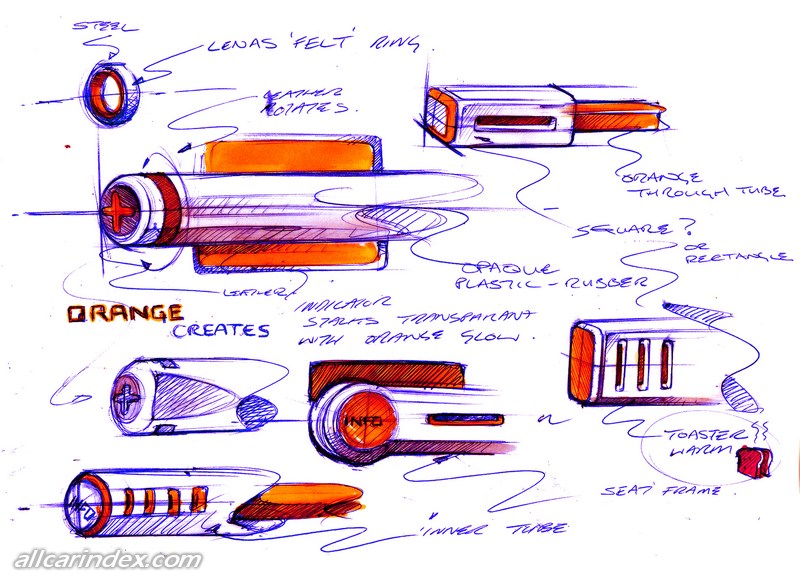The warm woollen floor carpets are made of the same material as the Swedish Ice Hotel ice bed cover! It's water resistant, yet still soft to touch. The center-console is flush with orange to increase the feeling of a warm, cosy environment. With colourful functionality and visible safety features, Orange is used to highlight the interaction between the car and its occupants. This includes the touch buttons throughout the car, the door handles and important safety features like the Whiplash Protection System (WHIPS) indicator and the Side Impact Protection