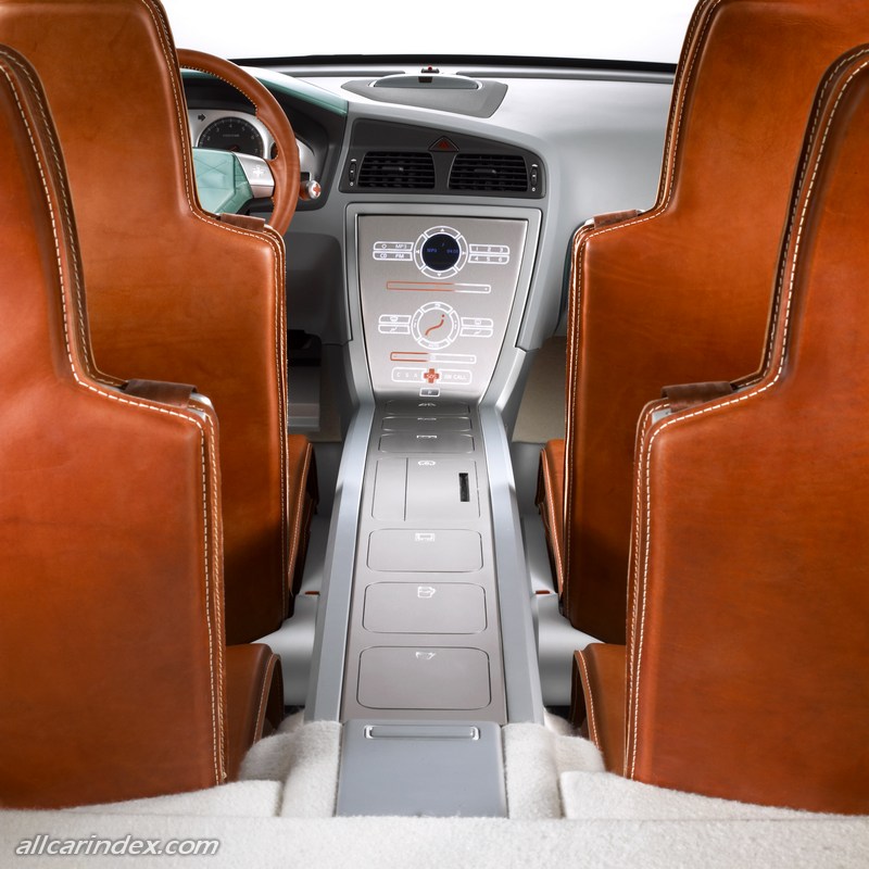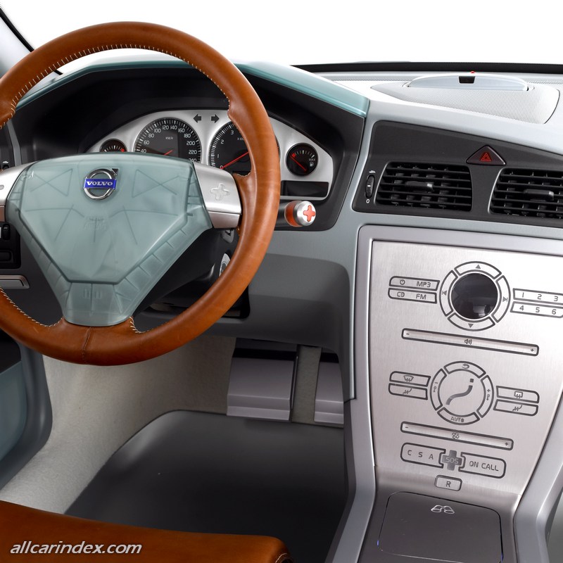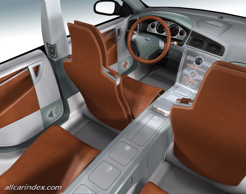 In the ACC2, the criss-cross safety belt, which was introduced in the Safety Concept Car (SCC) last year, is by no means the only detectable safety feature. Emphasizing Volvo's state-of-the-art technology in this field, the safety features on board have been made highly visible. In addition, the doors' safety bars are actually hand grips that promote the safety cage. The airbag in the steering wheel is visible through frosted glass as are the first-aid and toolbox kits, integrated into the front doors.