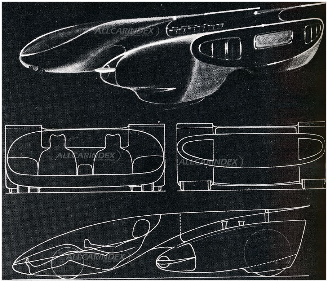 Car with a separate power pack. Developed in 1970. An experimental aerodynamic car in which the passenger space and the power train are separated in a very unique proposal. Engine and driving system are taken from Lamborghini Miura. Presented at an American show. Reportedly, Americans who are normally pretty sophisticated before novelties could not contain a sense of astonishment at the sight of this contraption.