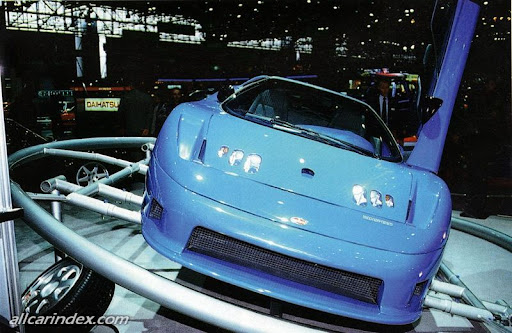 On the base of the just introduced Bugatti EB 100 GT, RINSPEED DESIGN continues the old tradition. The striking blue color, defined as "Bugattti-blue" or "bleu-de-France", already distinguishes this sporty, but still elegant dream car.