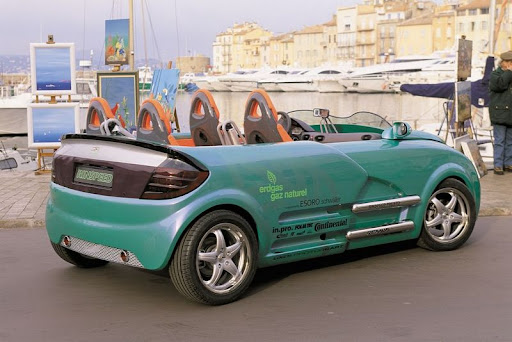 The Rinspeed Presto transforms itself in a few seconds from an under-3-meter long two-seater roadster - presto! - into a 3.7-meter long four-seater with plenty of room for the rear-seat passengers. The additional space can also be used as a pick-up bed for cargo when the rear-seat backrests are folded down.